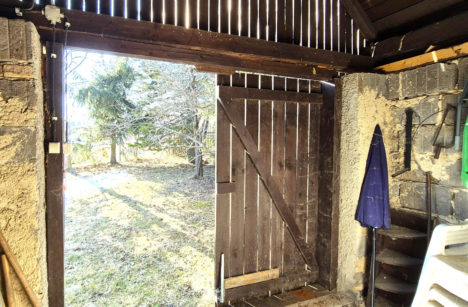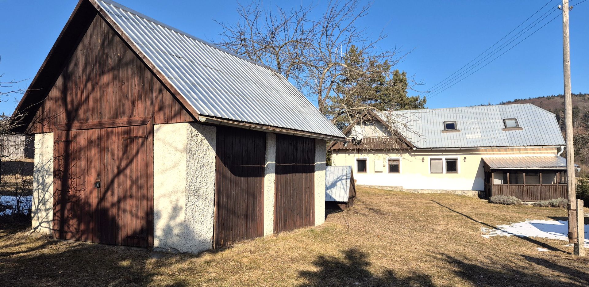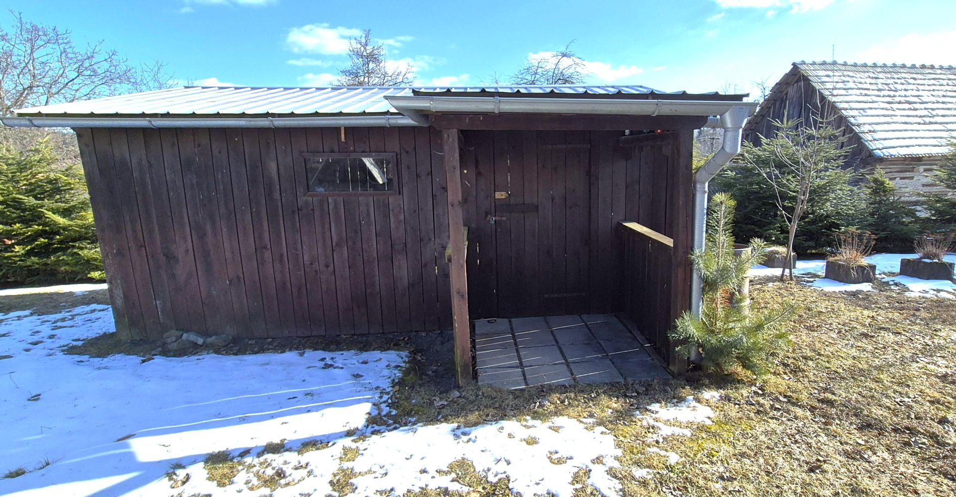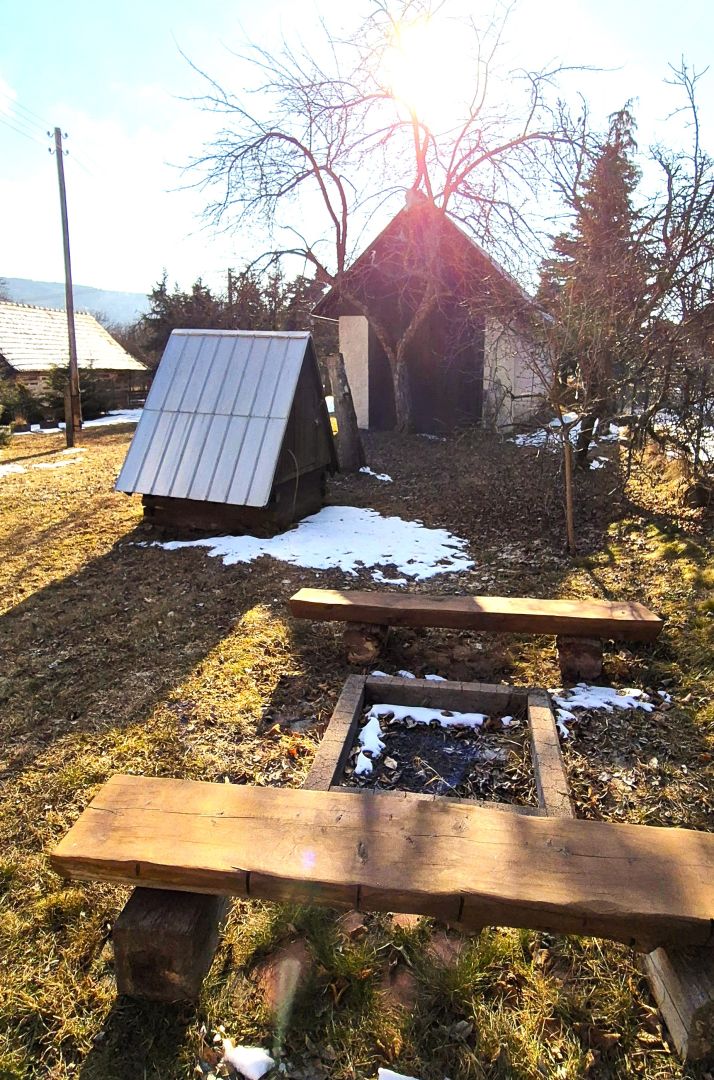 Pri dome sa nachádza garáž v štýle humna, menšia dreváreň, studňa a posed s ohniskom, čo vytvára ideálne podmienky na relaxáciu a oddych. Dom je napojený na elektrickú sieť a má vlastný zdroj vody zo studne, avšak plyn ani kanalizácia v osade nie sú k dispozícii.