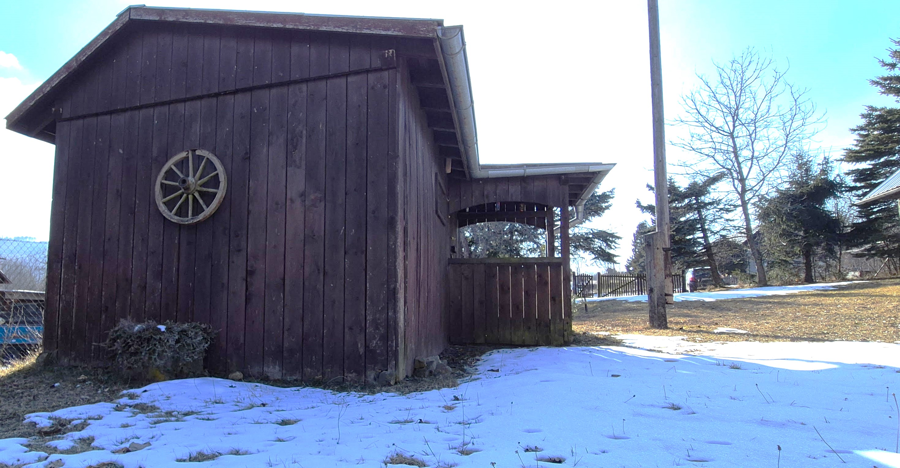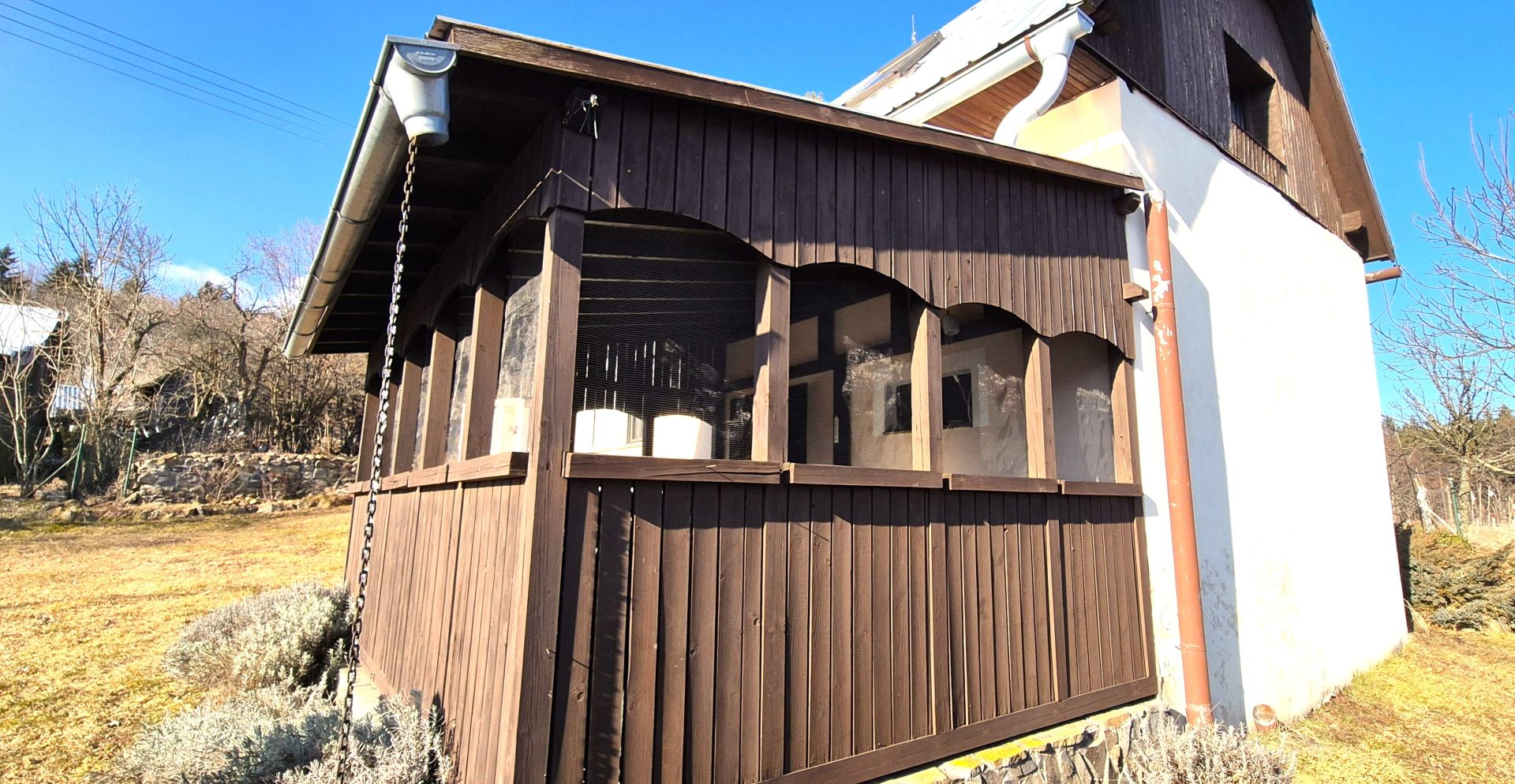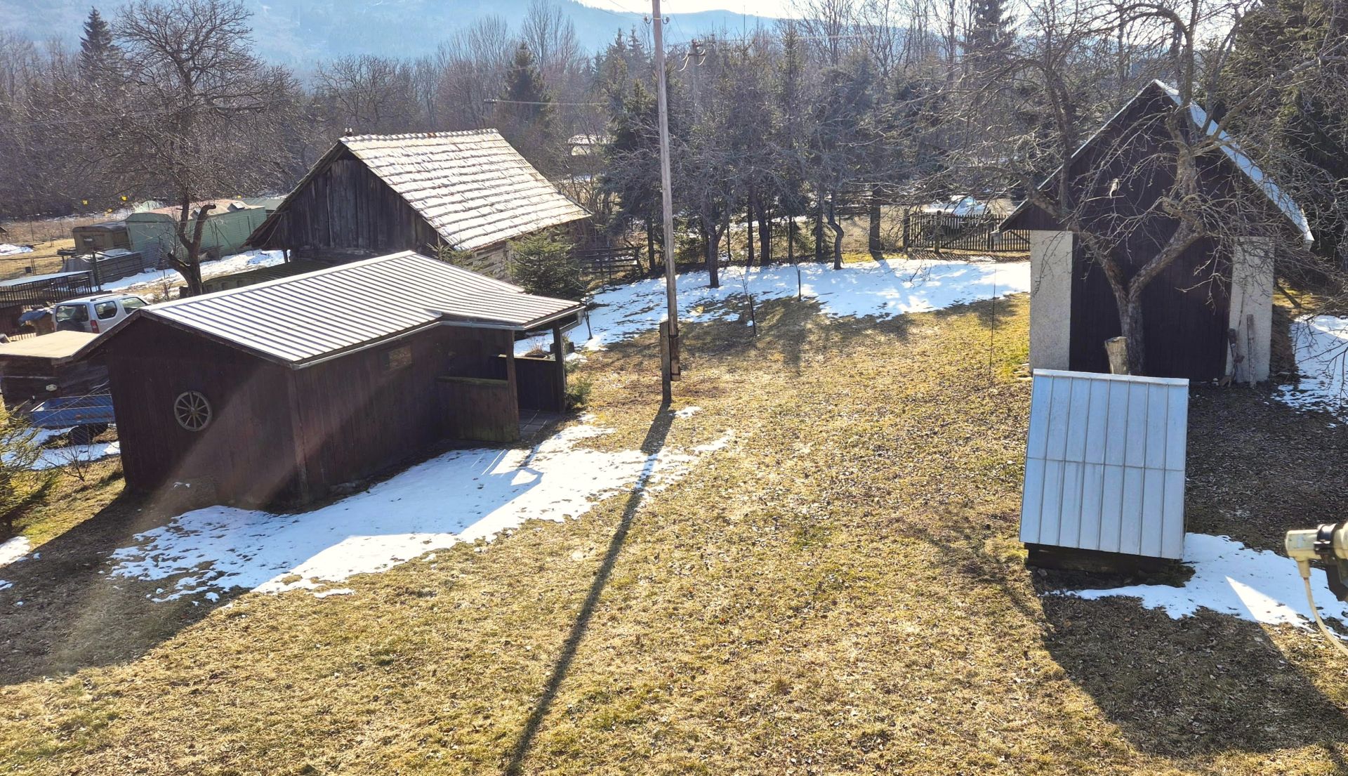 Pri dome sa nachádza garáž v štýle humna, menšia dreváreň, studňa a posed s ohniskom, čo vytvára ideálne podmienky na relaxáciu a oddych. Dom je napojený na elektrickú sieť a má vlastný zdroj vody zo studne, avšak plyn ani kanalizácia v osade nie sú k dispozícii.