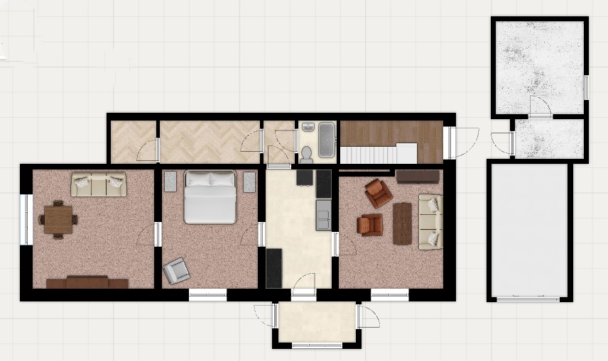 Rodinný dom bol postavený v medzivojnovom období, prevažne z kameňa. Cez vstupnú verandu vstúpite do kuchyne, ktorá je srdcom domácnosti, odtiaľ sa dostanete do troch obytných izieb a príslušenstva, ktoré pozostáva z kúpeľne s WC a dvoch pomerne veľkých komôr. Dom zaberá zastavanú plochu 158 m2, z čoho čistá obytná plocha je približne 100 m2.
