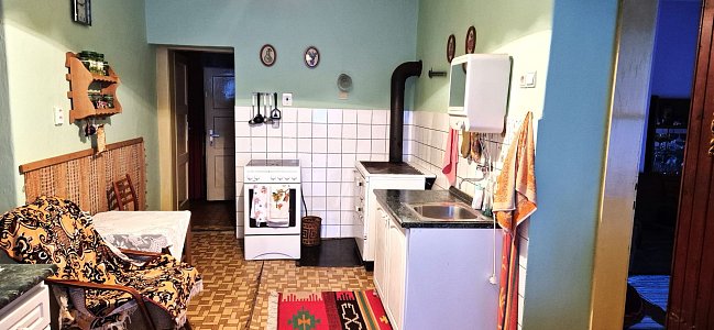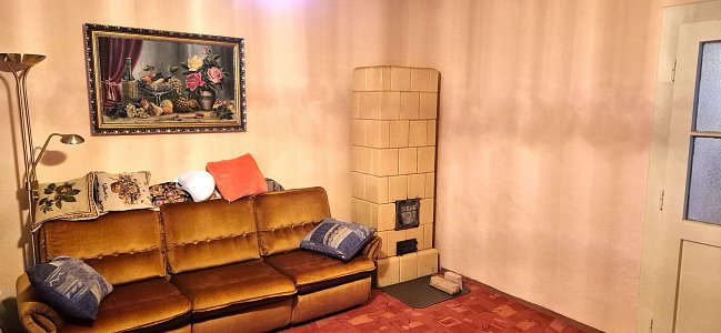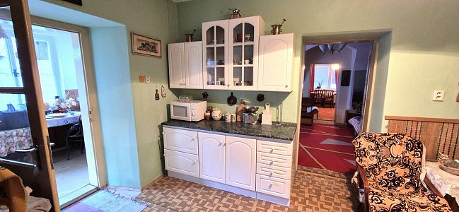 Podkrovie s vysokým padlášom ponúka možnosť rozšírenia obytného priestoru, zatiaľ čo pivničné klenbové priestory dodávajú domu na jedinečnosti. Dom je postavený prevažne z kameňa a je v pôvodnom stave. Veľké obytné miestnosti a štýlová klenbová spálňa pôsobia skutočne výnimočne a vytvárajú príjemnú atmosféru. Kúrenie je zabezpečené elektrickými akumulačnými pecami a kachľovými pecami na drevo.
