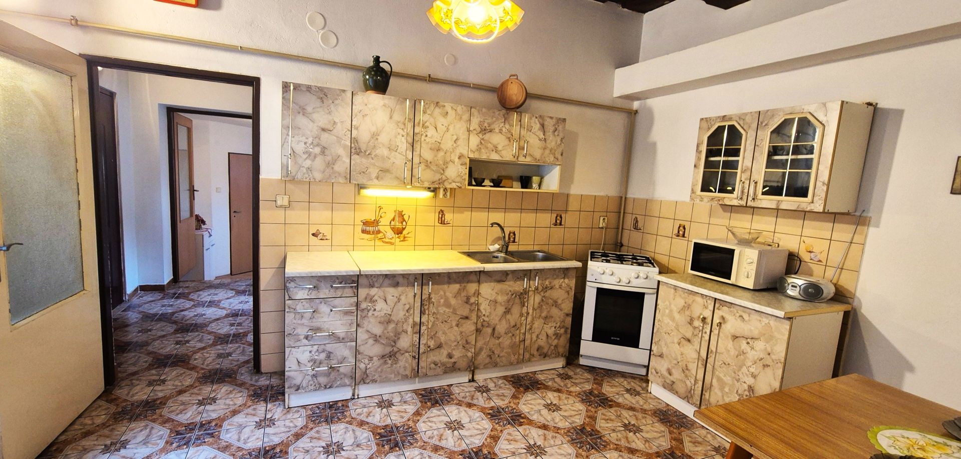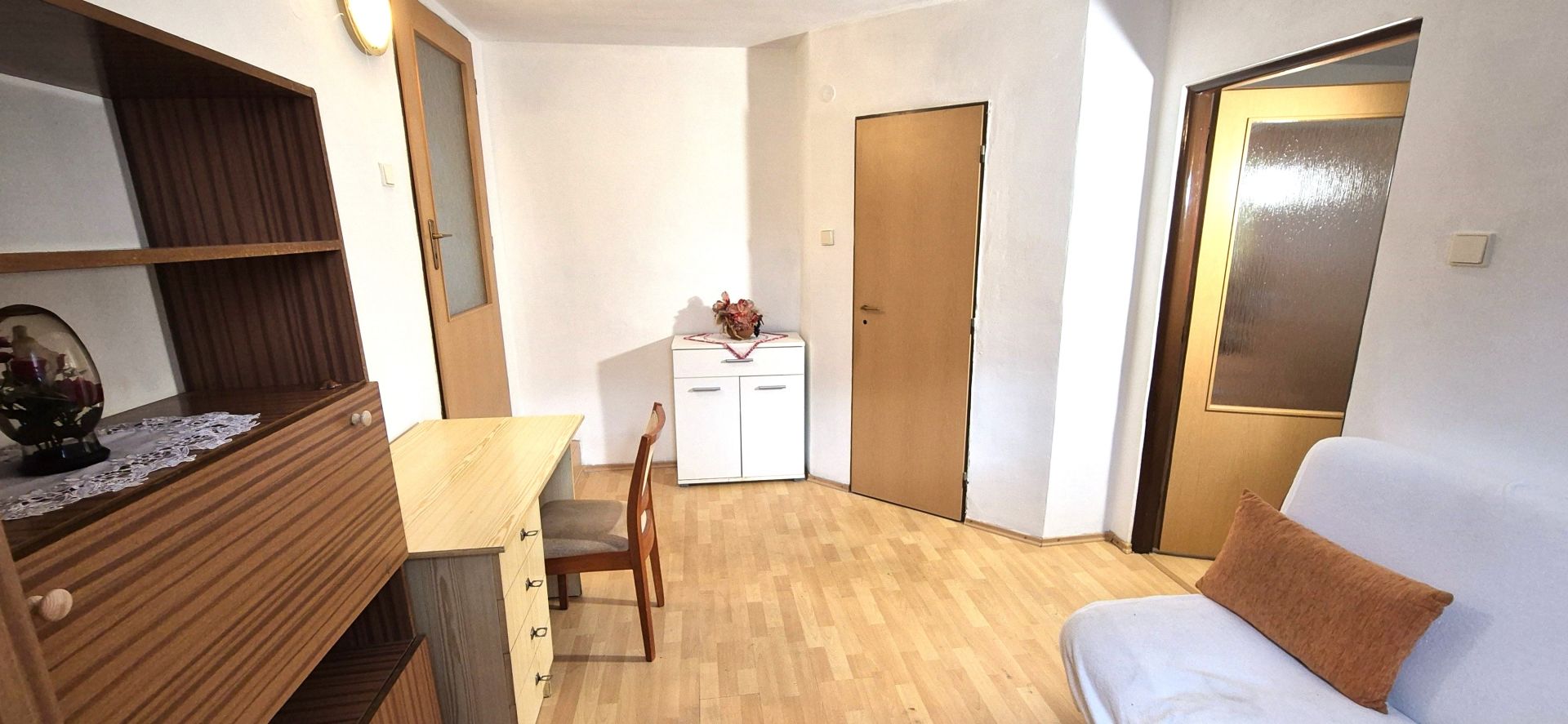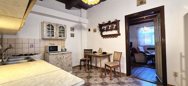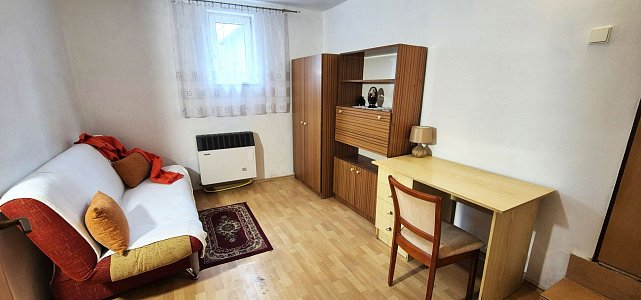 Na predaj je vidiecky rodinný dom, nachádzajúci sa v Slovenskej Ľupči, vzdialený cca 10 km od Banskej Bystrice. Pozostáva zo vstupnej predsiene, kuchyne s jedálňou, veľkej obývačky, dvoch spální, menšej komory a veľkej kúpeľne s WC. Obytná podlahová plocha je 75 m2. V chodbe, kuchyni, obývačke a v kúpeľni sú pôvodné vysoké, priznané, zdravé, trámové, 3m vysoké stropy, v spálňach, ktoré vznikli z bývalej hospodárskej časti, sú hladké stropy, vysoké 2,5 m.